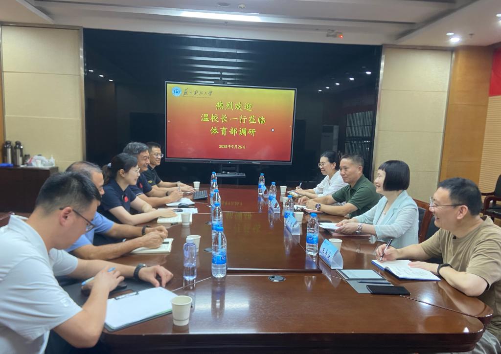 9月26日下午,党委常委、副校长温波带队,人文社科处处长宋青等一行四人,赴体育部开展科研工作专题调研,并举行座谈交流。体育部领导班子成员及教师代表参加座谈,会议由体育部副主任(主持工作)吴谋林主持。