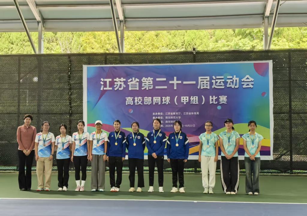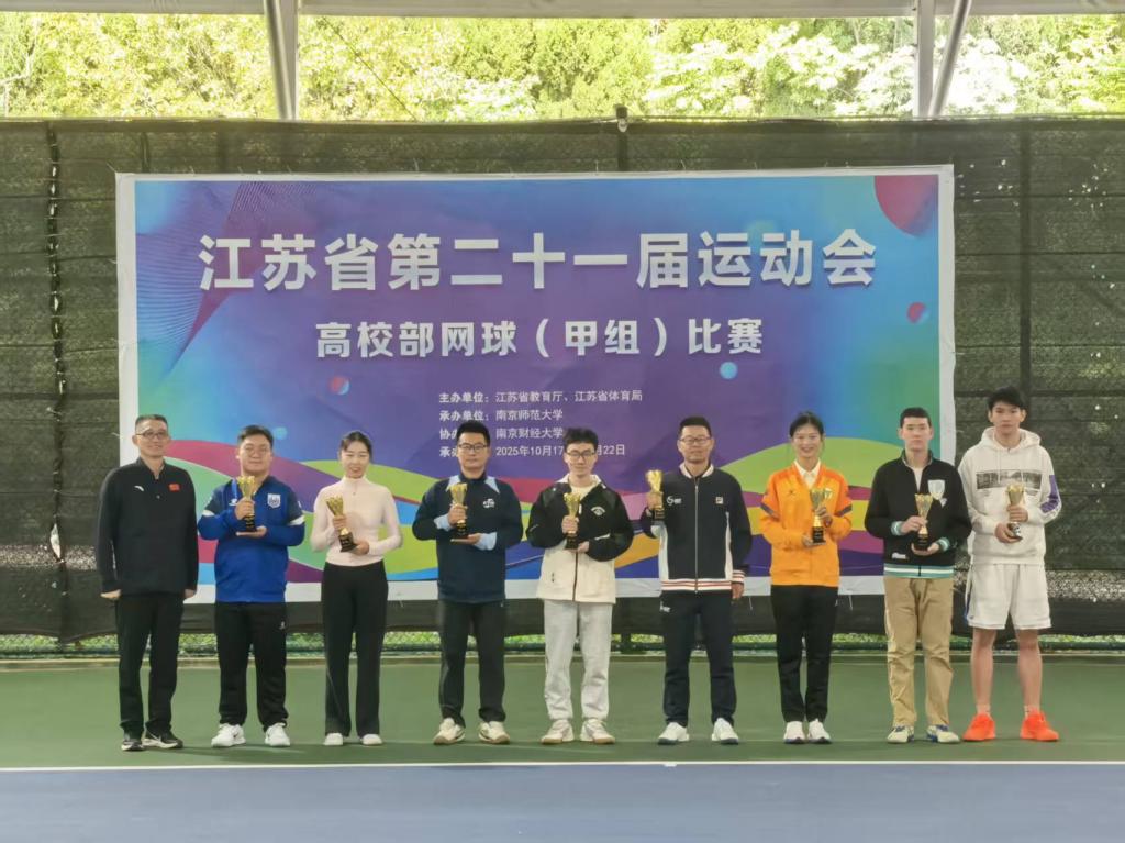 10月17日-10月22日,江苏省第二十一届运动会高校部网球(甲B组)比赛在南京财经大学举办。我校代表队斩获二金一铜、团体总分第三名和一个第七名、一个第八名的好成绩,创造了我校代表队在此项赛事的历史最佳成绩。