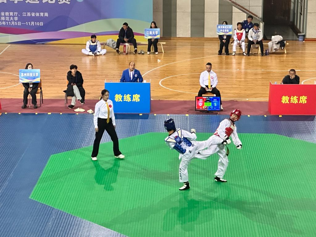 11月5日至10日,由省教育厅与省体育局主办、省学生体育协会协办、江苏师范大学承办的江苏省第二十一届运动会高校部跆拳道比赛圆满落幕。本次比赛吸引了来自南京大学、东南大学、苏州大学等81所高校的555名运动员参赛,我校代表队派出7位运动员,经过激烈的对抗,取得了一枚金牌一枚铜牌以及两个第五名,最终获得甲B组团体总分第四名的优异成绩,主教练周小林老师获得“优秀教练员”称号。